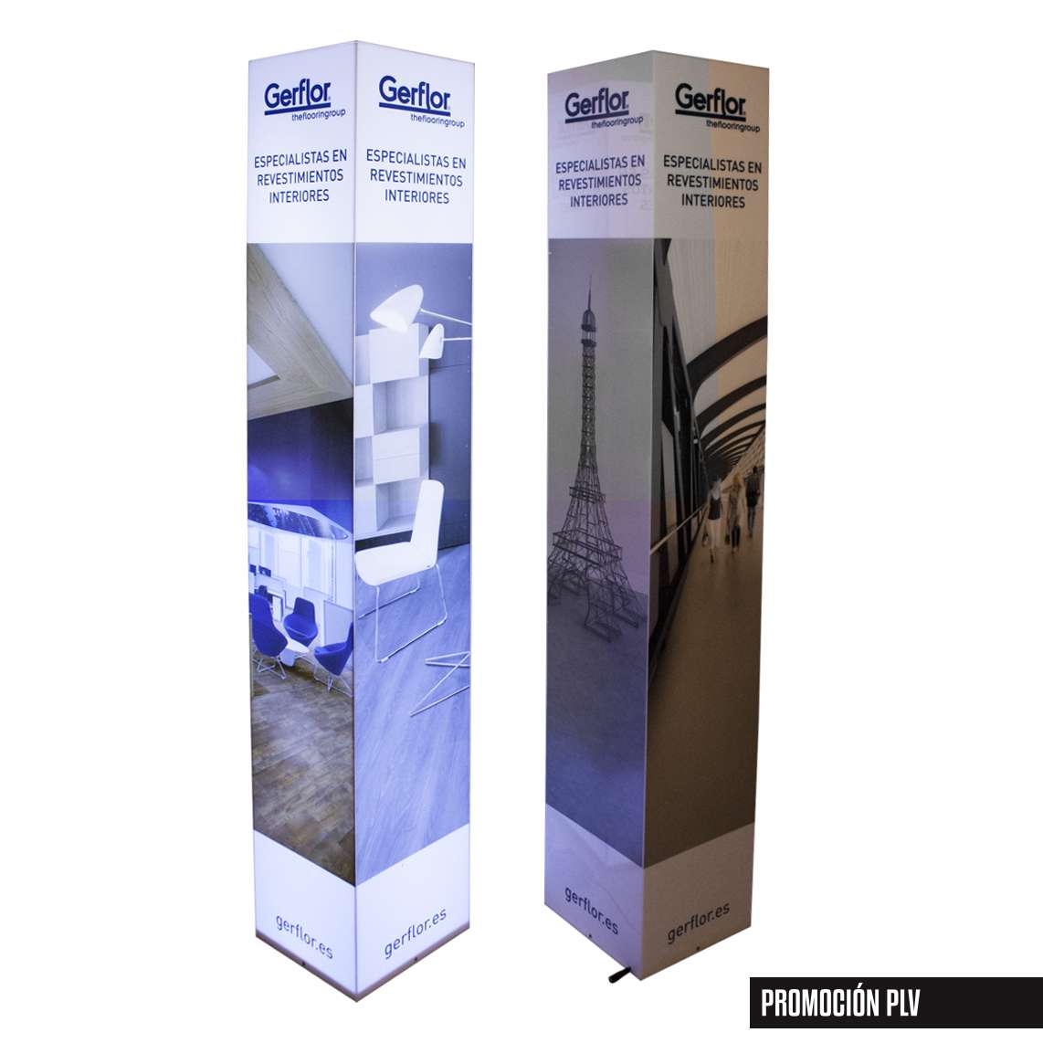 Tótem publicitario retroiluminado que combina funcionalidad y diseño impactante. Fabricado en metacrilato blanco de 3 mm con impresión en cuatricromía, cuenta con una estructura cuadrada de cartón de 25×25 cm y 150 cm de altura. En su interior, una tira de LED genera una luz difusa y suave que resalta el mensaje promocional, captando la atención en cualquier entorno comercial.